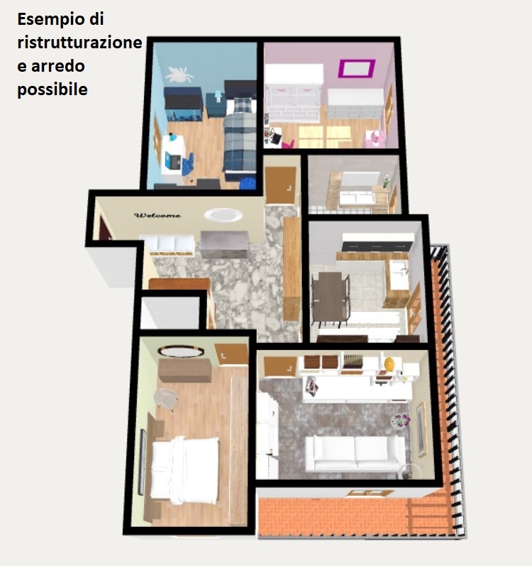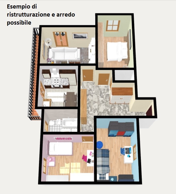 L'appartamento è da personalizzare; il riscaldamento è centralizzato con contabilizzatori di calore installati. Il piano alto garantisce un'ottima luminosità e vista sul castello di Borgo.