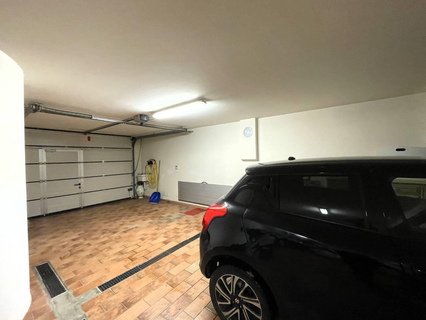 Alla proprietà si può accedere tramite cancelletto pedonale oppure tramite cancello automatico che porta all'ingresso dell'ampio box di circa 60mq sito ai fondi dello stabile. All'interno del box possono trovare comodamente posto tre auto, più una all'esterno. Qui troviamo anche un locale tecnico dove è presente la caldaia e due accumulatori di acqua da 200 litri l'uno, infine l'intercapedine che circonda tutta la casa.