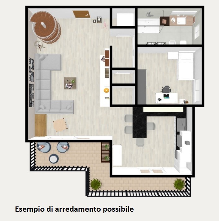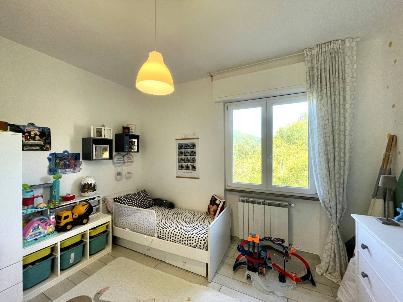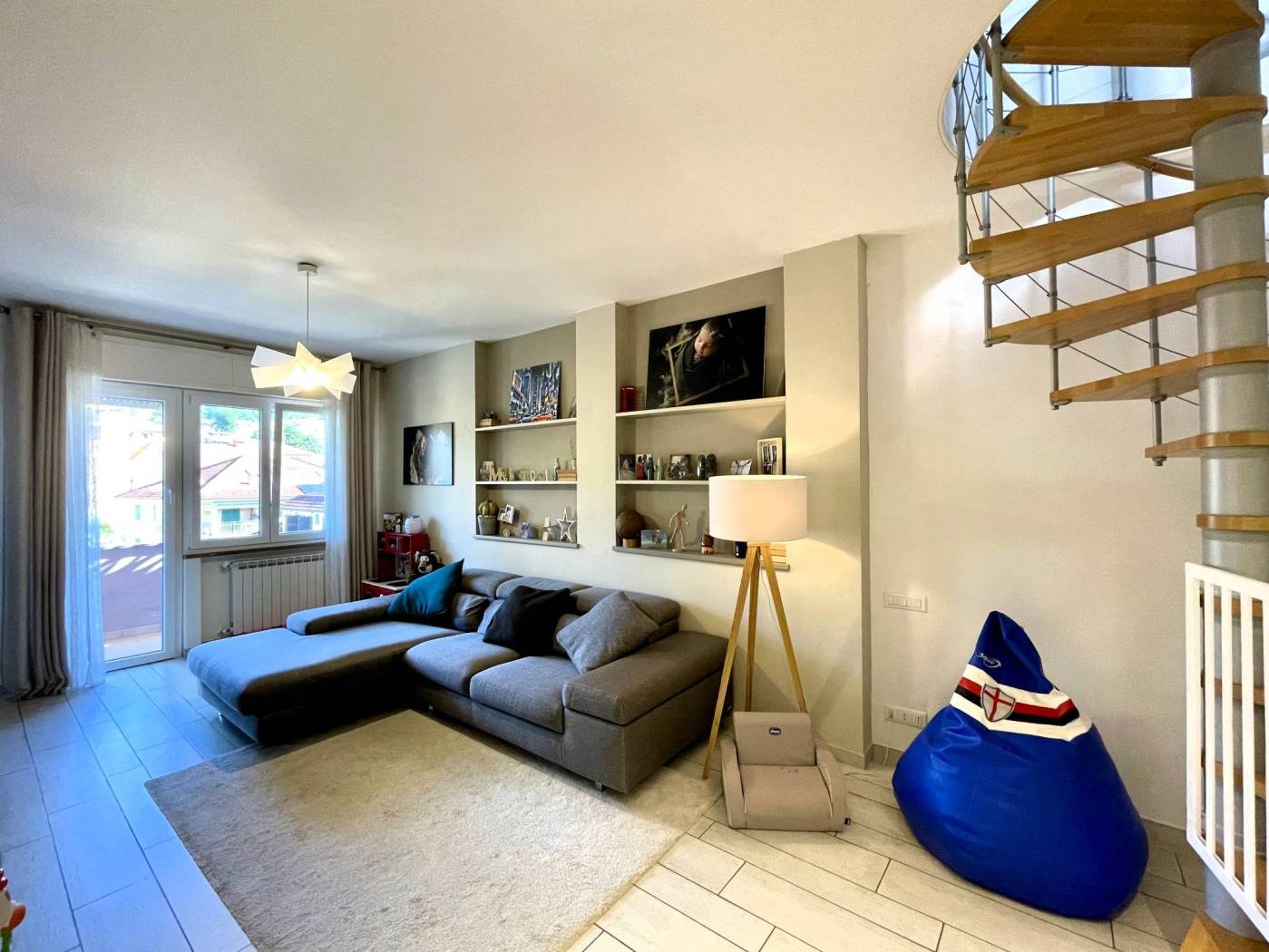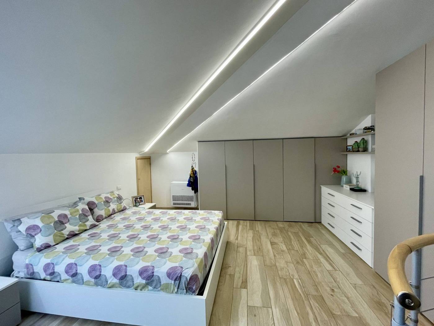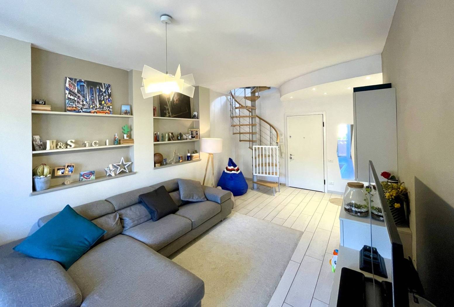 Di recente ristrutturazione, si presenta in ottimo stato e subito abitabile. Disposto su due livelli abitativi è così composto; ingresso su ampio salone con cucina abitabile a vista, camera da letto, bagno con box doccia e tre comode dispense. E' presente anche una balconata alla quale si accede da cucina e soggiorno. Al secondo piano, raggiungibile con scala a chiocciola dal soggiorno, troviamo la camera da letto matrimoniale, semimansardata e dotata di climatizzatore caldo/freddo. Da qui si accede inoltre all'ampio locale sottotetto ad uso ripostiglio. Tutti gli infissi sono nuovi in PVC con doppio vetro completi di zanzariere; la porta di ingresso è blindata.